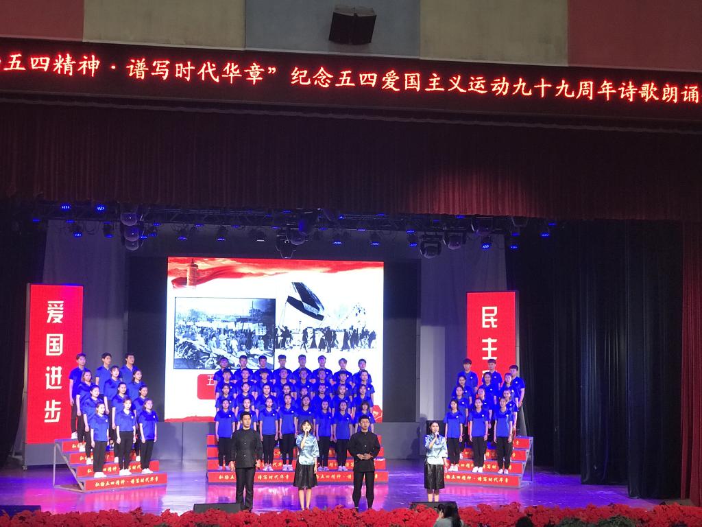 时值五四青年节之际,为歌颂党的伟大成就、丰富学生的课余文化生活,2018年5月3日下午一点半,我校在星空剧场举办以“弘扬五四精神·谱写时代华章”为主题的纪念五四爱国主义运动九十九周年诗歌朗诵会。我校校长唐小林、党委书记高华锦、各二级学院院长以及部分二级学院负责人出席此次诗歌朗诵比赛,千余名师生到场观看。